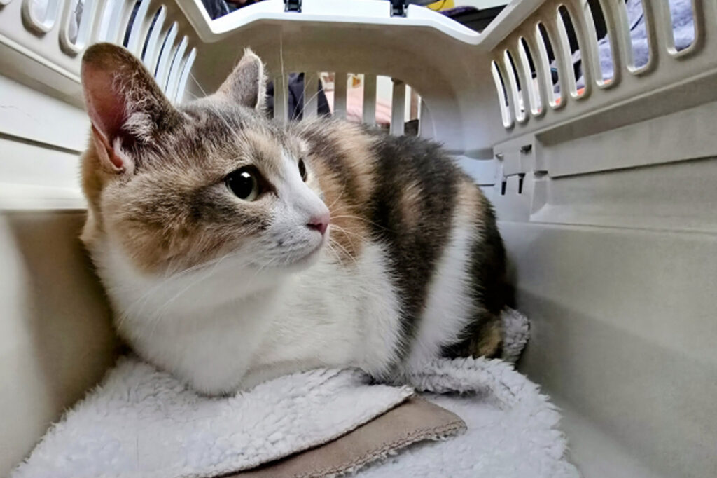 キャリーの上からタオルや布をかけていただくと、ねこちゃんが落ち着きやすくなります。
