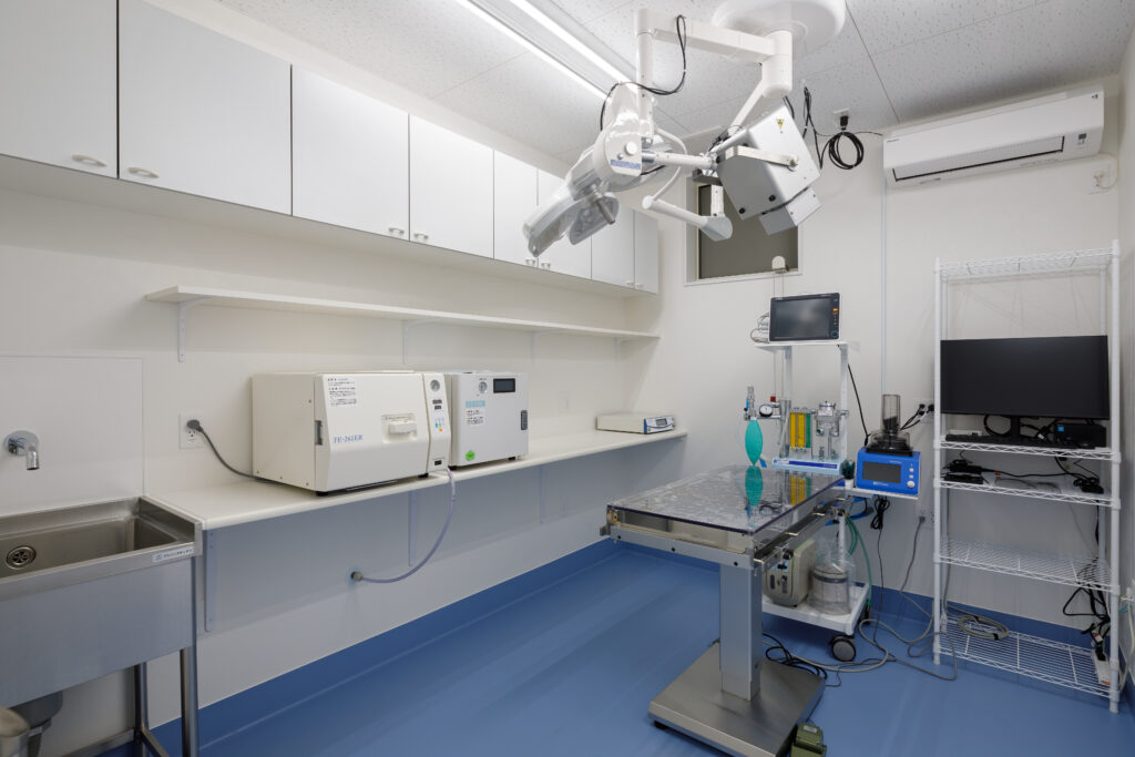 衛生管理を徹底し、安全で確実な手術を行うための設備を整えています。小さな命を預かる責任を胸に、万全の体制で手術に臨んでいます。