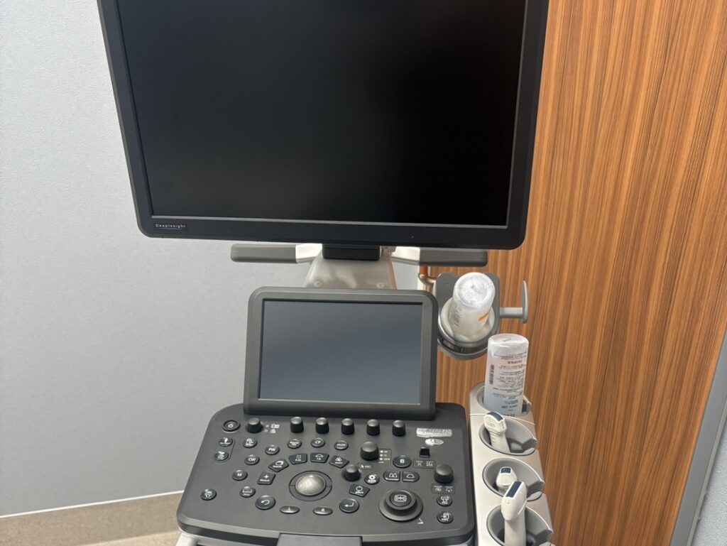 体内の臓器の状態をリアルタイムで確認できる超音波診断装置です。