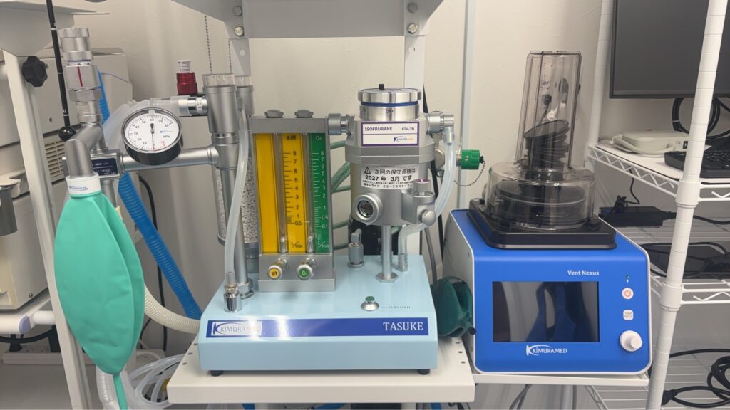 麻酔下や呼吸が弱くなった際に呼吸をサポートする医療機器です。