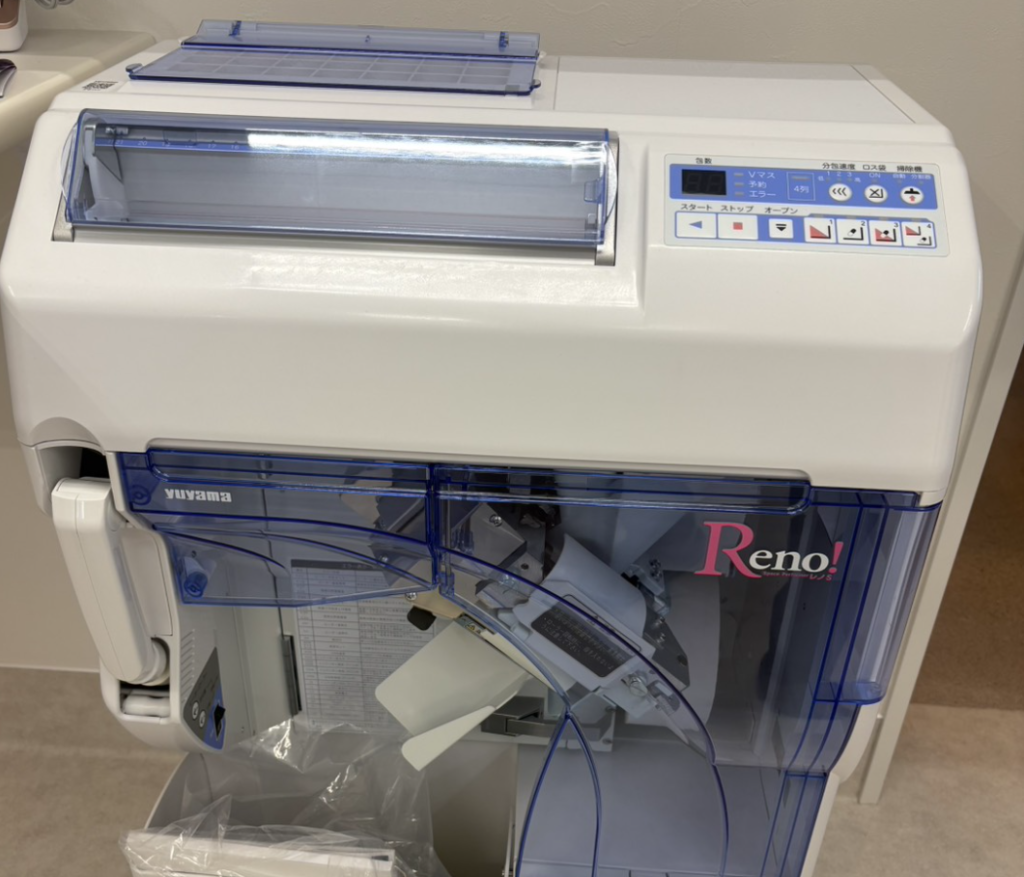 お薬を1回分ずつ正確に分けて包装する機器です。